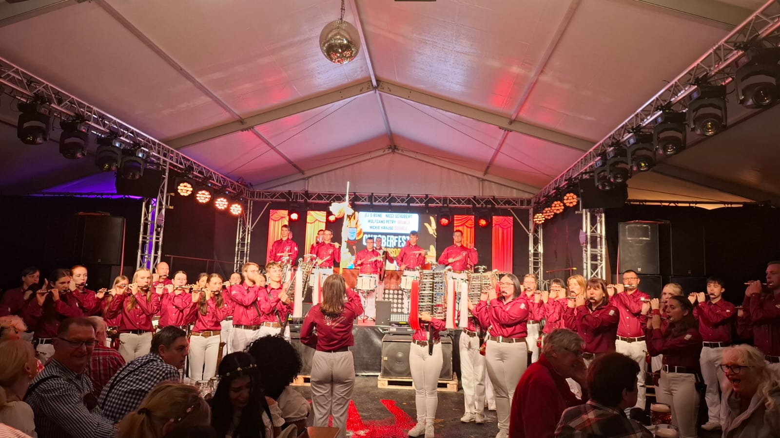 Für den feierlichen Start sorgte die Band Erzsteinl-musi, welche die Besucherinnen und Besucher mit klassischer Alpenländischen Musik verzauberten und die Stimmung ordentlich Fahrt aufnehmen ließ. Im Anschluss daran folgte der Spielmannszug Kleinröhrsdorf, der mit schwungvollen Märschen und viel guter Laune ebenfalls das Publikum zum Singen und Mitklatschen anregte. Direkt im Anschluss folgte um 19 Uhr der offizielle Festbieranstich, begleitet von der passenden musikalischen Umrahmung. Damit war das Oktoberfest 2025 offiziell eröffnet – die Stimmung im Zelt war bereits zu diesem Zeitpunkt sehr gut.
